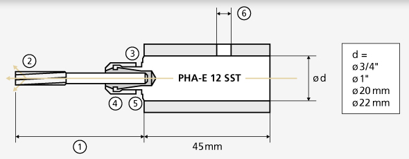 1. Werkzeuglänge ausserhalb der Werkzeugaufnahme 30 - 65 mm (je nach Ø)