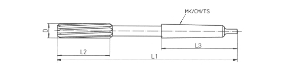 Machine reamers HSS-E with or without ACUREA hard surface coating, taper shank, left hand spiral 7-8°, right hand cutting, from Ø 5.06 up to 40.05 mm, available in 0.01 mm increments (also in H7 tolerance) at very short sight. Tolerance 0/+0.004, lead angle 45°, female centres.